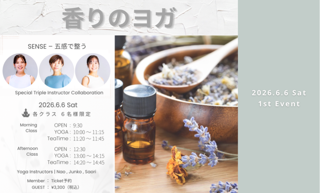 3名のインストラクターがリレー形式でクラスを紡ぎ、五感にやさしく響く特別な時間をお届けします。